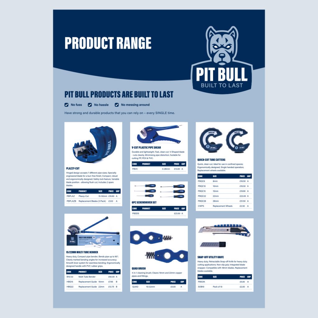 Pit Bull, a subsidiary of Todays Tools, aimed to position its products as premium, built to last with superior materials. I crafted a logo that embodies their durability and designed distinctive packaging artwork for each product.